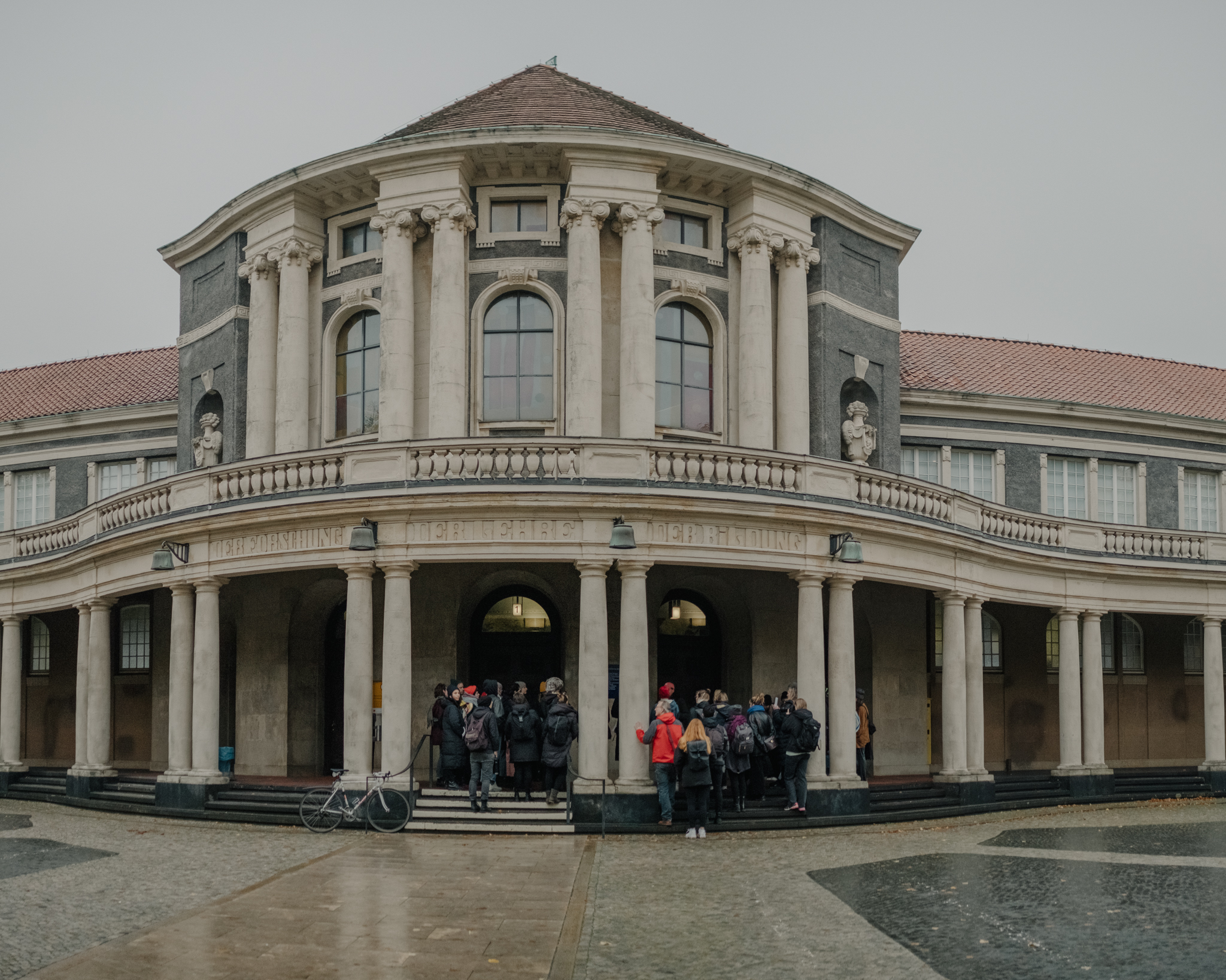 The final point of reference was the Christus and Garrison Church, where two ‘Denkwege Zeichnungen’ were displayed over marble plaques commemorating the ‘heroic death’ of German colonialism. Seven additional plaques were also covered in black felt. Through the act of covering and revealing, a critical space—the ‘colonial space of thought’—is opened, inviting reflection on how discourses and images of violence are normalized in public space. Since public space functions as a site of collective memory that produces cultural values, the gesture emphasizes the impact of these images when encountered repeatedly.